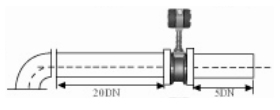 4.同一平面兩個彎管的安裝 如果流量計的前端有兩個90°彎頭,要保證流量計的前直管段≥20D,后直管段≥5D | | |||||||||||