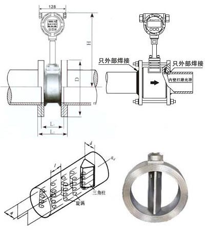 渦街流量計主要用于工業(yè)管道介質(zhì)流體的流量測量,如氣體、液體、蒸氣等多種介質(zhì)。其特點是壓力損失小,量程范圍大,精度高,在測量工況體積流量時幾乎不受流體密度、壓力、溫度、粘度等參數(shù)的影響。無可動機械零件,因此可靠性高,維護量小。儀表參數(shù)能長期穩(wěn)定,渦街流量計采用壓電應力式傳感器,可靠性高,可在-20℃~+250℃的工作溫度范圍內(nèi)工作。有模擬標準信號,也有數(shù)字脈沖信號輸出,容易與計算機等數(shù)字系統(tǒng)配套使用,是一種理想的流量儀表。